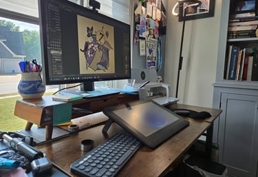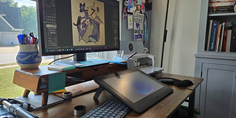 My journey began in art school many years ago, but like a lot of artists, when faced with the realities of creating art in the real world, I got scared. So I walked away from my dreams and went into another field that I love almost as much as art. For the last 25 years I've been a librarian at various institutions and levels, all the while continuing to draw and paint and create when I had time. During the pandemic, I found BTS and was inspired to reconnect with my art and decided to pursue it more professionally. Their music gave me the faith in myself to try and share my art with the world again. Hopefully, it will help you a bit as well.
